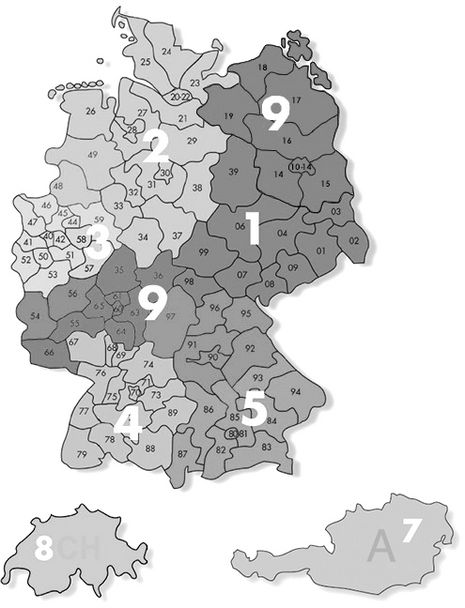 | 9 | PLZ 10-19, 35-36, 54-56, 60-66, 90-92, 95-97